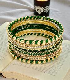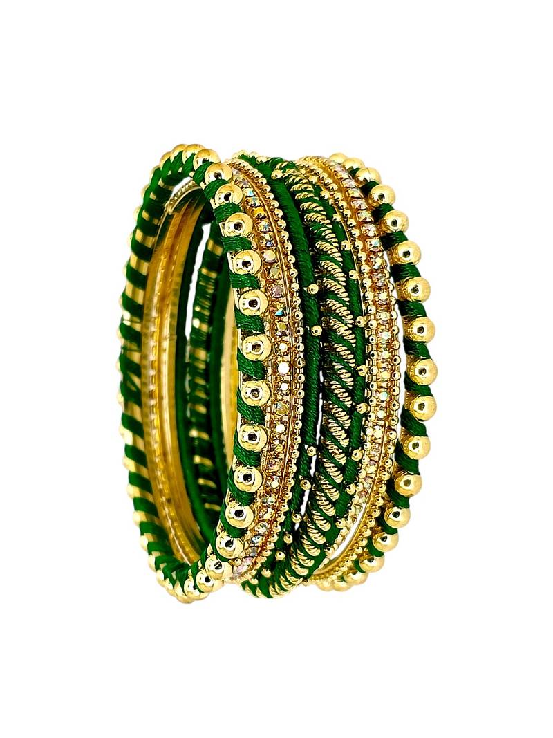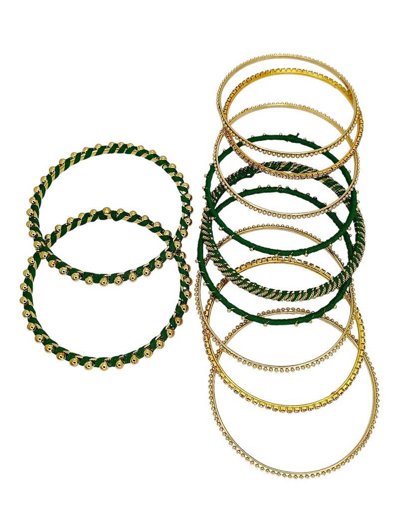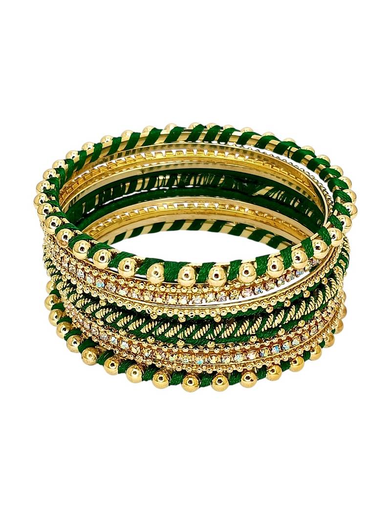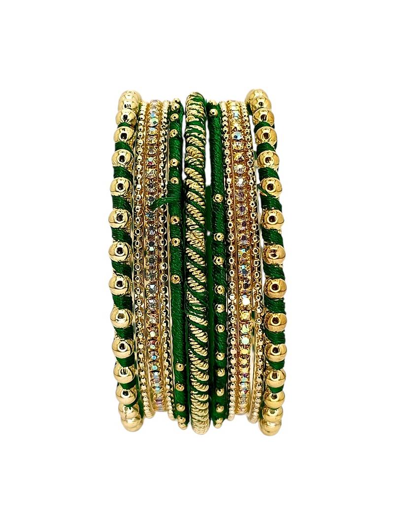 | Product Description | Set Of 11 Gold Toned Green Silk Thread Bangle Set, Studded With Cubic Zircon And Beads. Secured With Slip On Closure