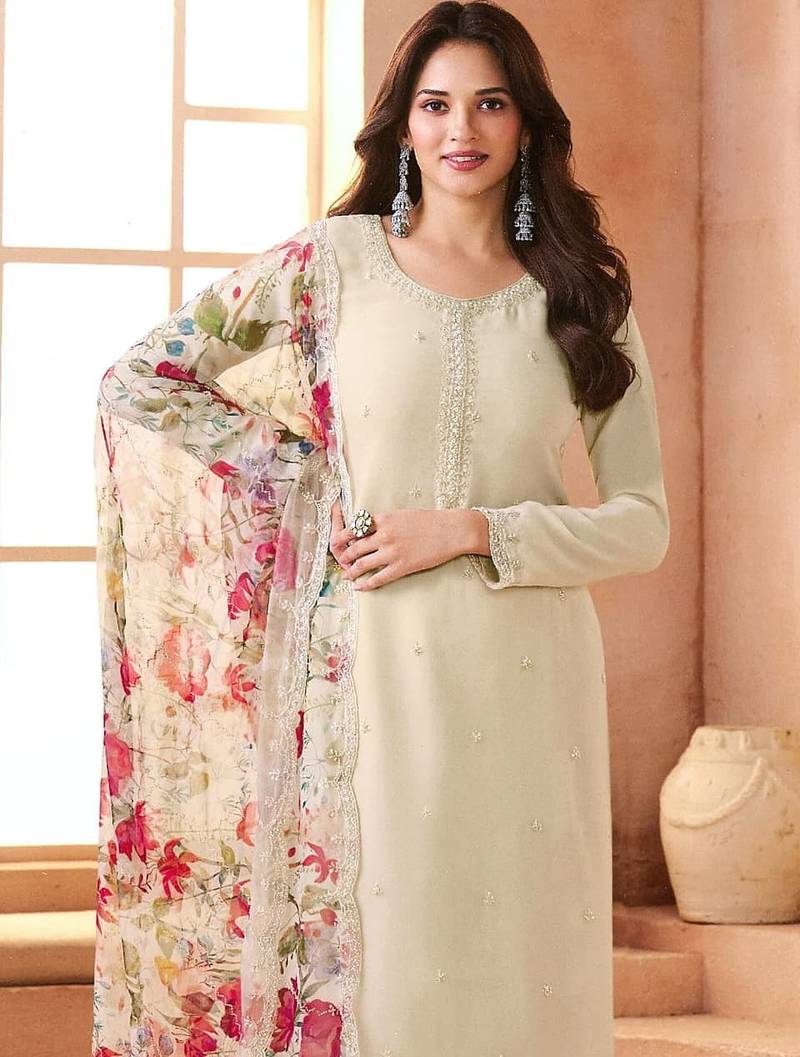 Ivory chiffon silk semi stitched suits