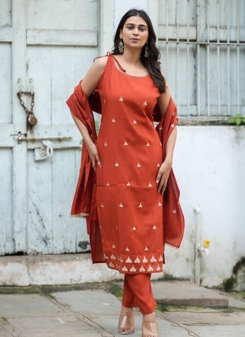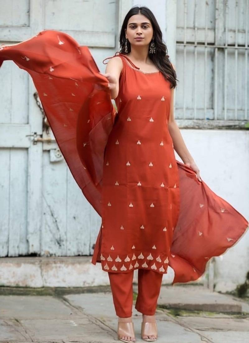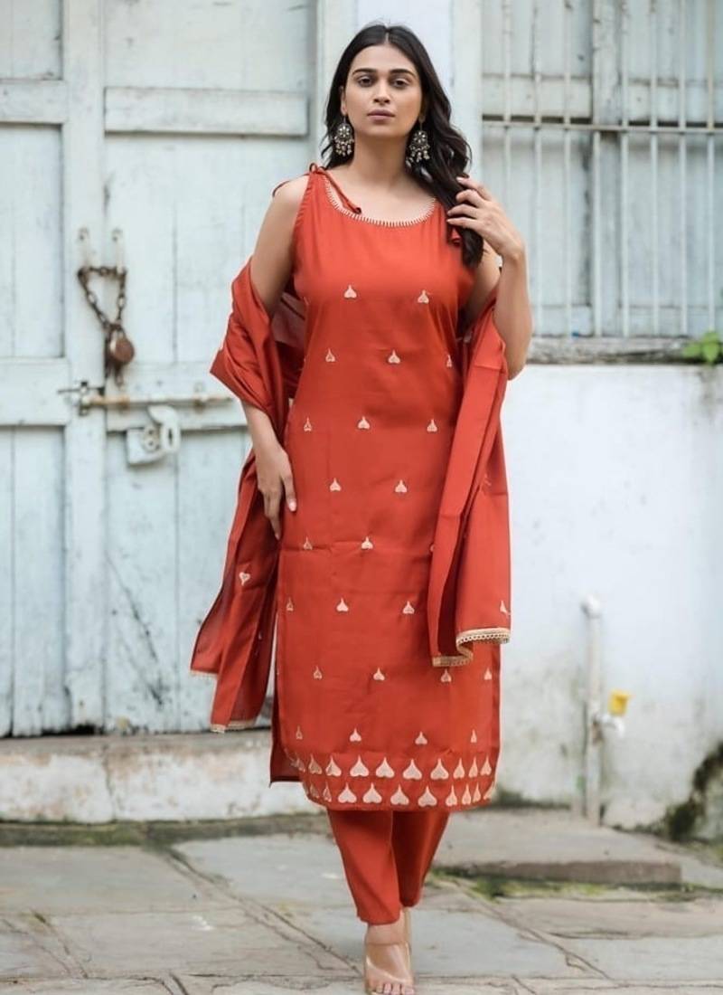 Indulge In Timeless Elegance With This Floral Embroidered Silk V Neck Kurta Trouser & Dupatta Set, Designed For Women Who Appreciate Luxurious Ethnic Wear With A Modern Touch. Crafted From Rich Silk Fabric, This Ensemble Offers A Smooth Texture, Natural Sheen, And A Sophisticated Finish—Perfect For Festive Occasions And Celebrations. The Kurta Features A Flattering V Neck Design That Enhances Your Neckline While Adding A Contemporary Edge To Traditional Attire. Adorned With Intricate Floral Embroidery, It Brings A Refined And Graceful Charm, Making This Outfit A Standout Choice For Special Events. Paired With Elegantly Tailored Trousers And A Coordinated Dupatta, This 3 Piece Set Creates A Complete And Polished Look. Whether You're Attending Weddings, Festive Gatherings, Or Evening Celebrations, This Kurta Set Ensures You Look Effortlessly Stylish And Confident. ? Key Features: Fabric: Premium Silk – Smooth, Rich & Elegant Finish Design: Floral Embroidered Kurta With Trouser & Dupatta Neck Style: Stylish V Neck Fit: Regular Fit For Comfort And A Flattering Silhouette Set Includes: Kurta, Trouser & Dupatta Occasion: Festive Wear, Wedding Wear, Party Wear, Special Occasions Care Instructions: Dry Clean Recommended ?? Why You’ll Love It: Luxurious Silk Fabric With A Premium Look And Feel Elegant Floral Embroidery For A Sophisticated Ethnic Appeal Flattering V Neck Design For A Modern Touch Perfect 3 Piece Set For Festive And Occasion Wear