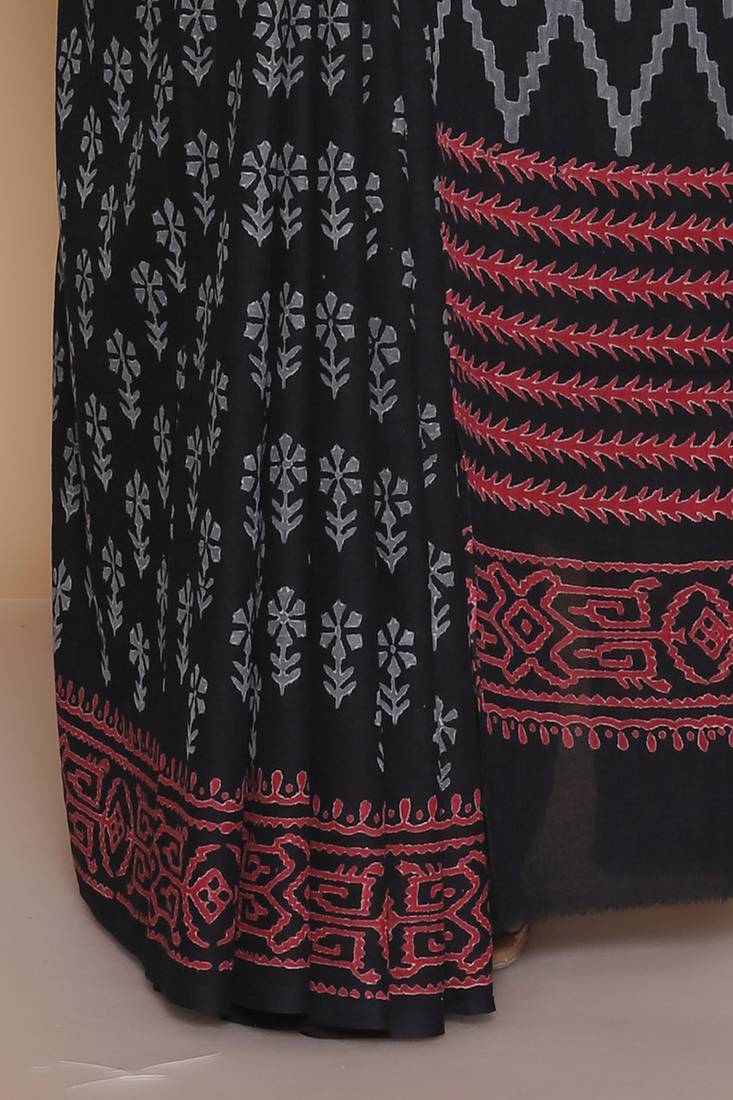 Product Name Kalamkari Printed Pure Cotton Ethnic Black Saree For Woman