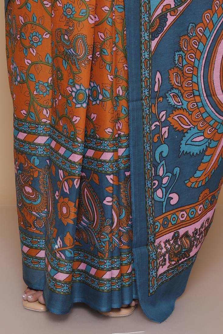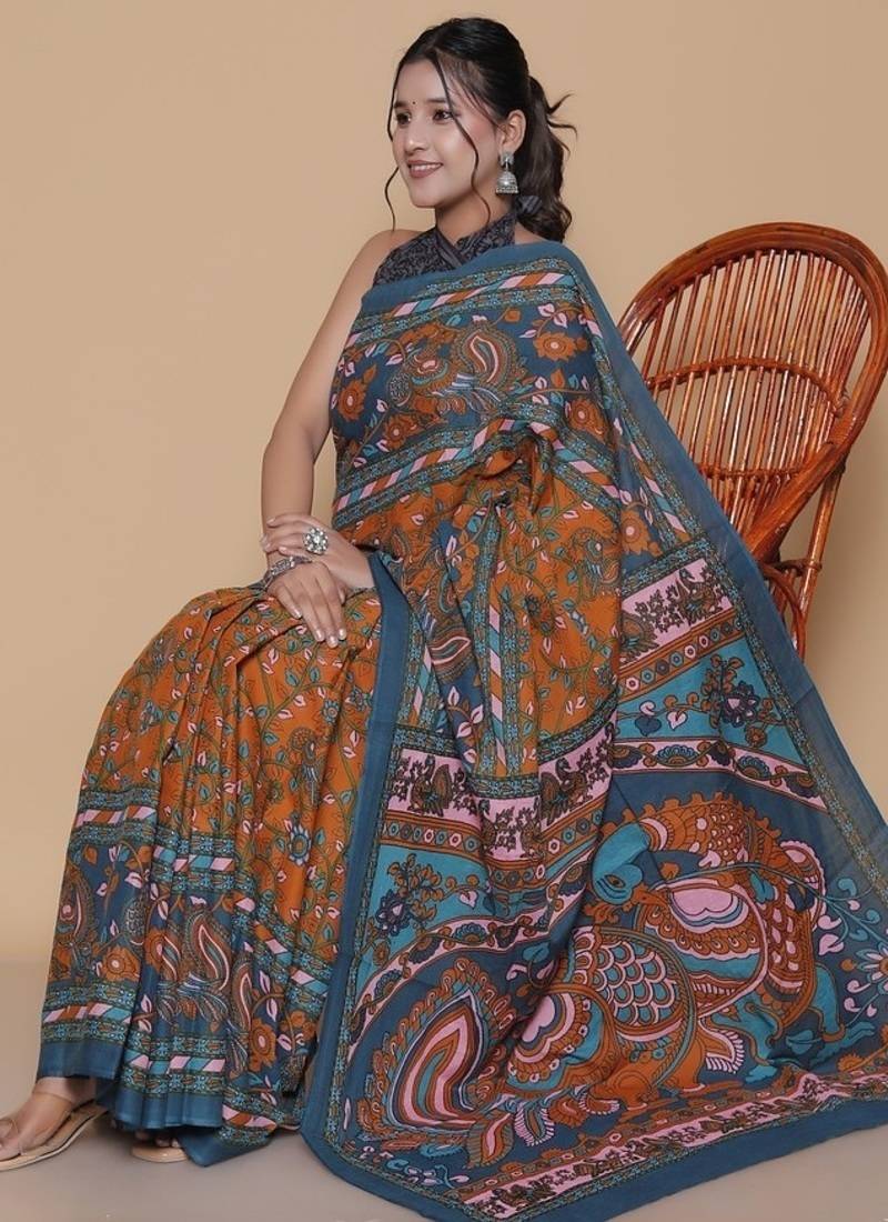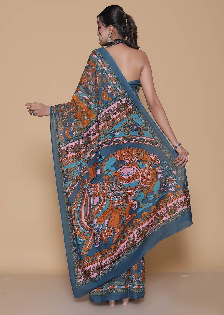 Product Name Kalamkari Printed Pure Cotton Ethnic Blue Saree For Woman
