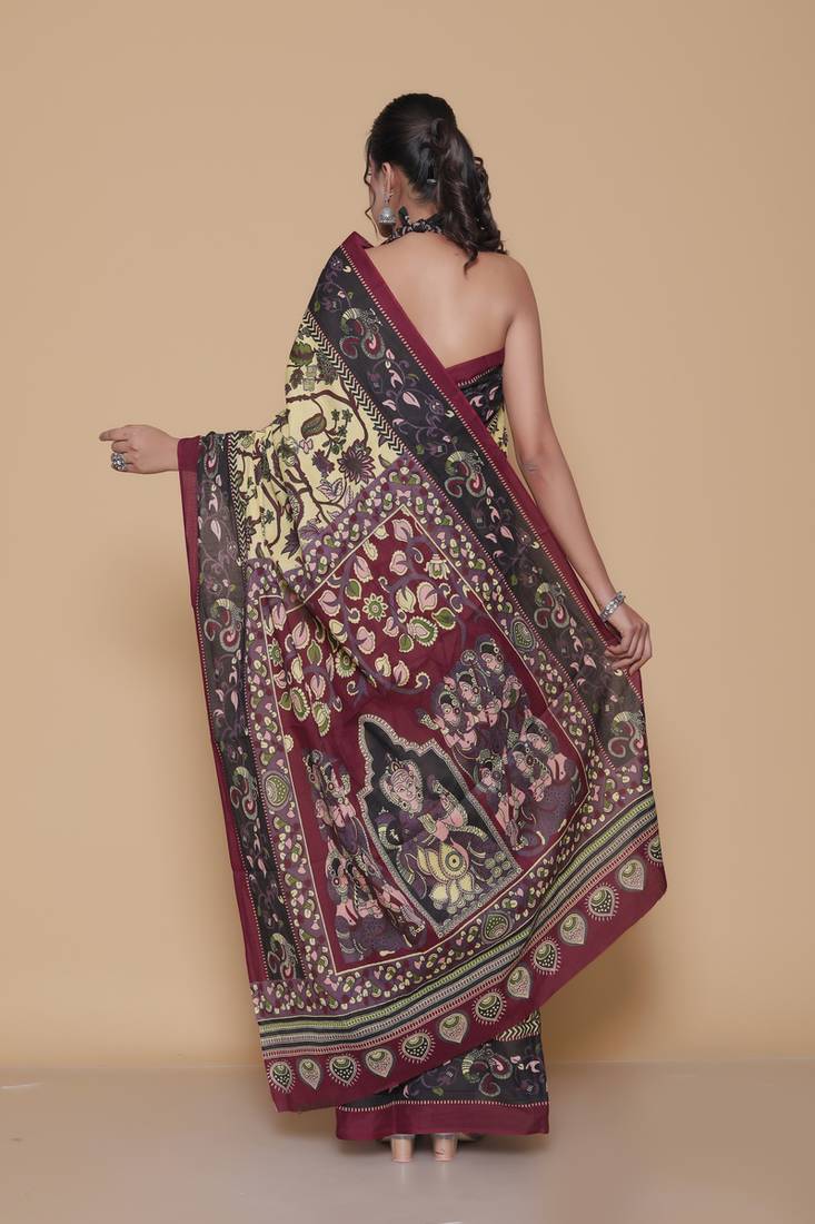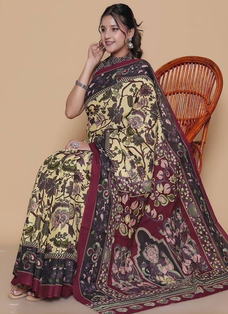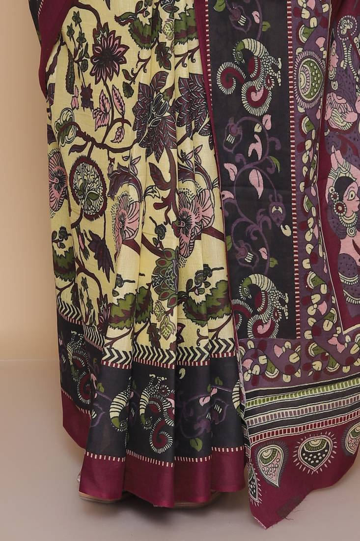Product Name Kalamkari Printed Pure Cotton Ethnic Cream Saree For Woman