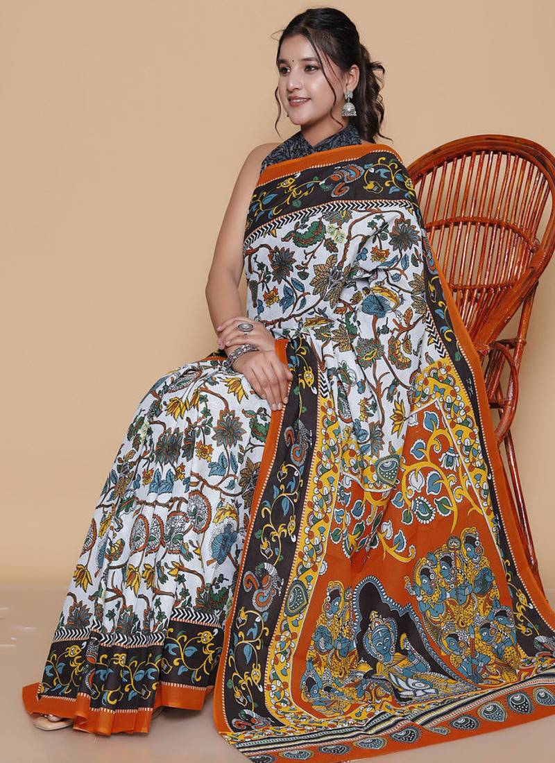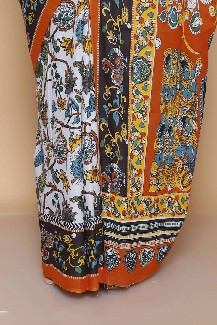 | Product Name | Kalamkari Printed Pure Cotton Ethnic Light Grey Saree For Woman | |