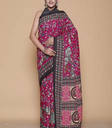 Kalamkari printed pure cotton ethnic magenta saree for woman