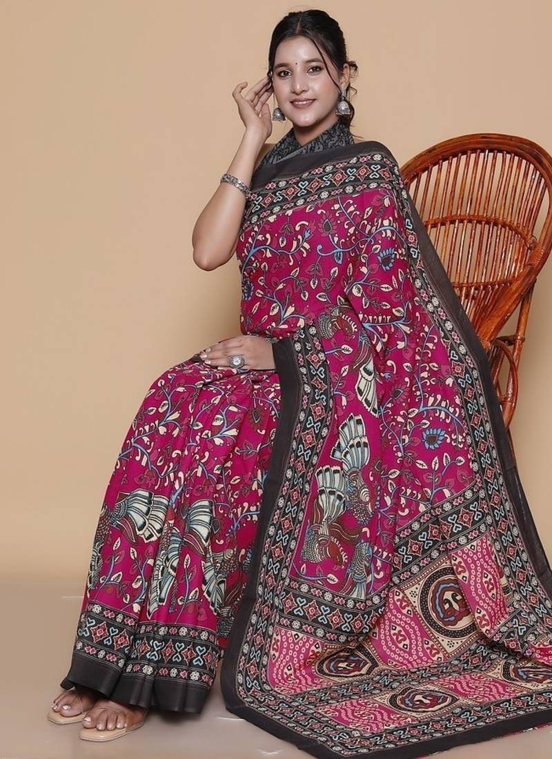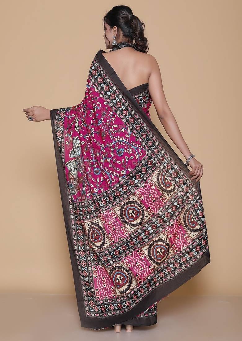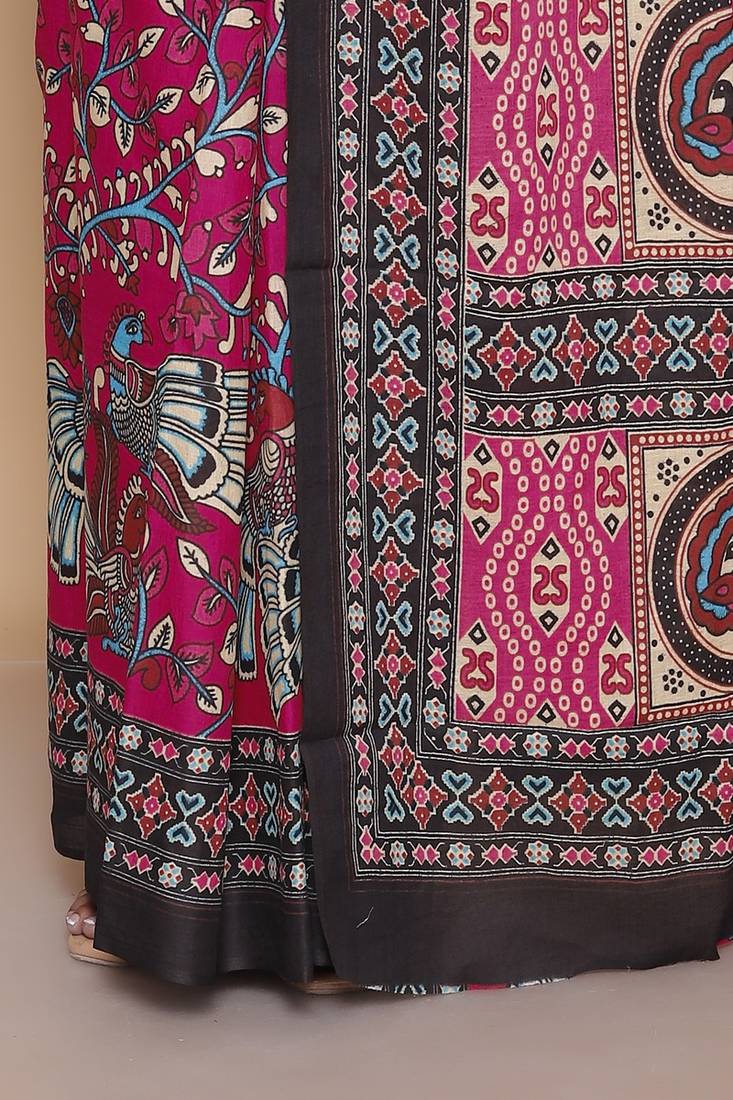 Product Name Kalamkari Printed Pure Cotton Ethnic Magenta Saree For Woman