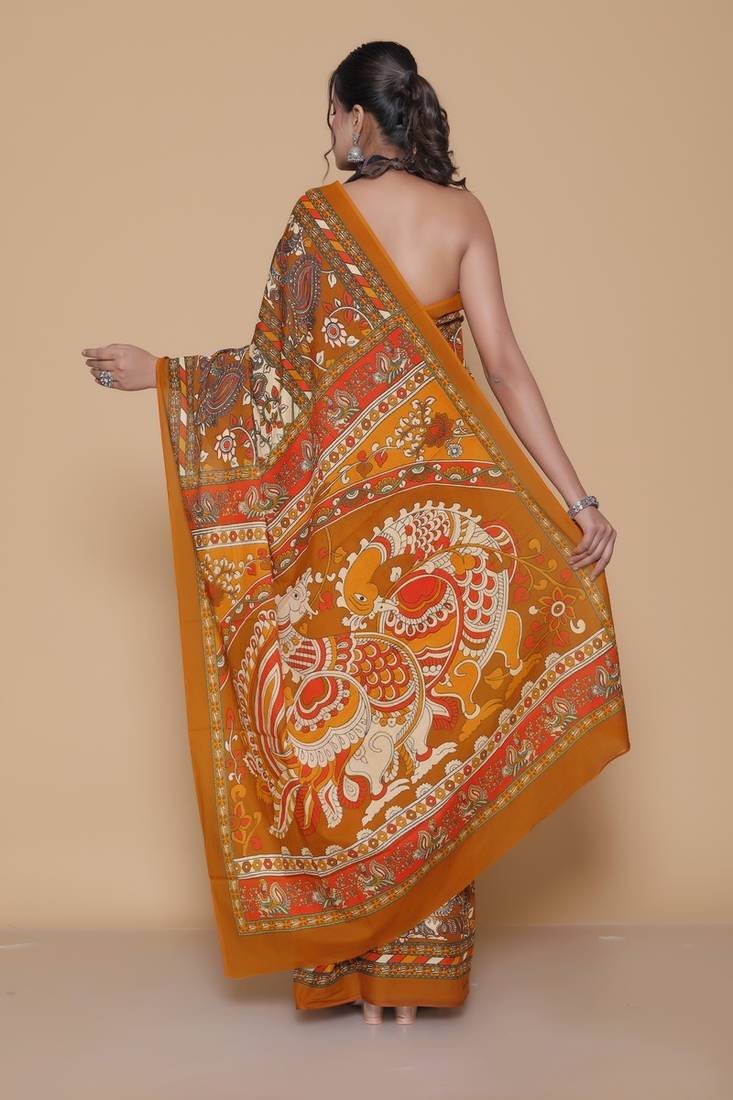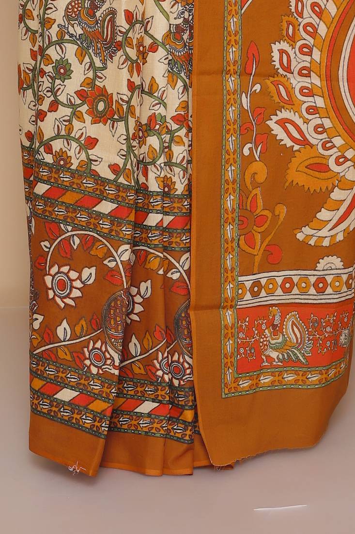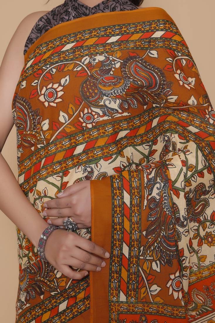 Product Name Kalamkari Printed Pure Cotton Ethnic Orange Saree For Woman