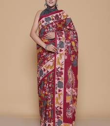 Kalamkari printed pure cotton ethnic red saree for woman