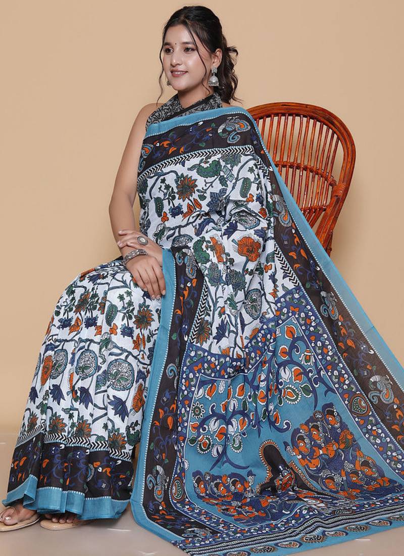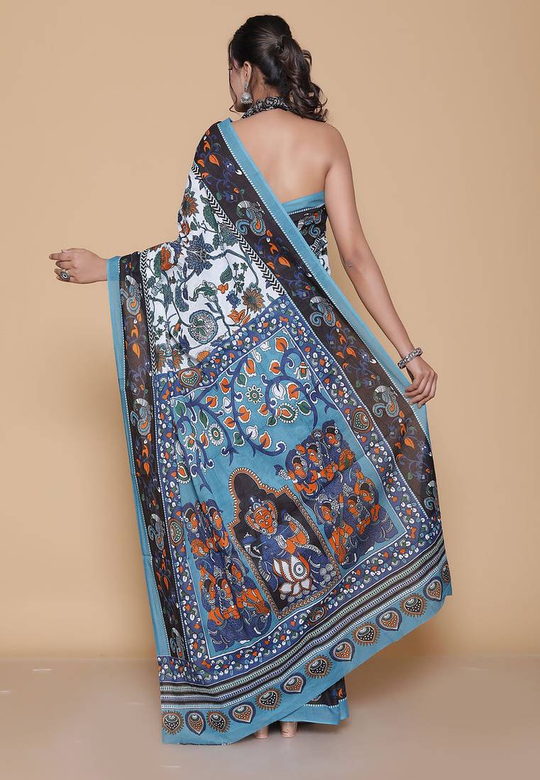 Product Name Kalamkari Printed Pure Cotton Ethnic Sky Blue Saree For Woman