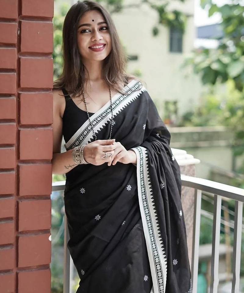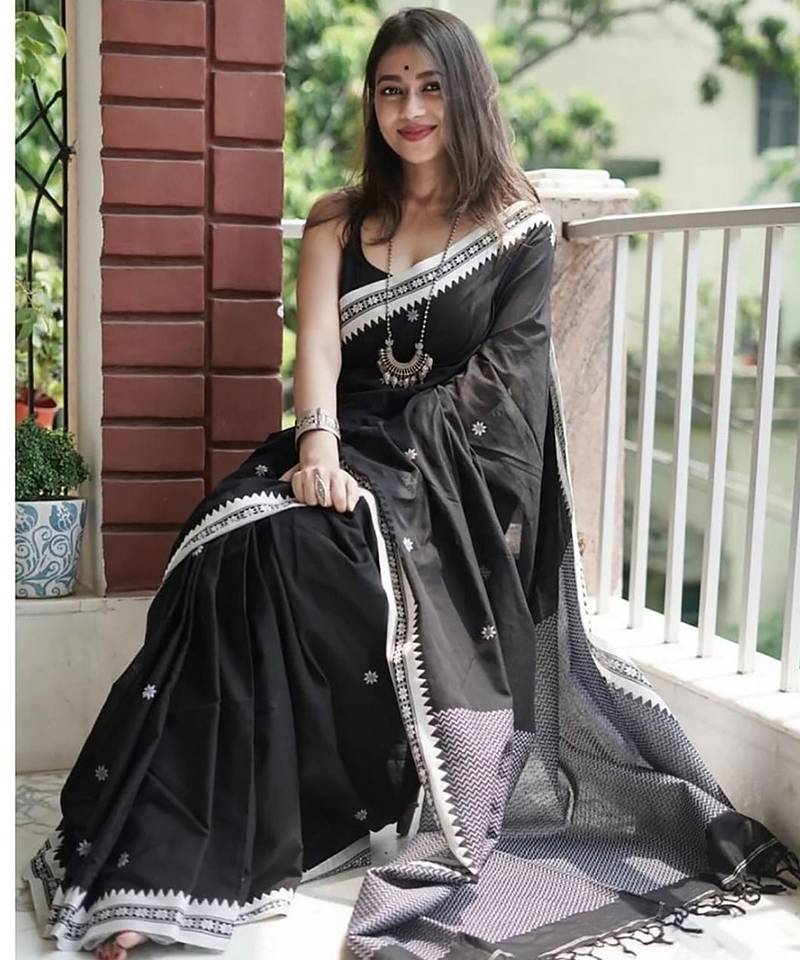 | Product Name | Black Soft Linen Blend Banarasi Jacuard Work Designer Party Wear Saree With Unstitched Blouse Piece | |