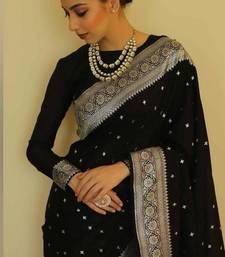 Black soft silk blend banarasi jacuard work designer party wear saree with unstitched blouse piece
