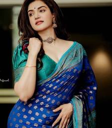 Blue green soft silk blend banarasi jacuard work designer party wear saree with unstitched blouse piece