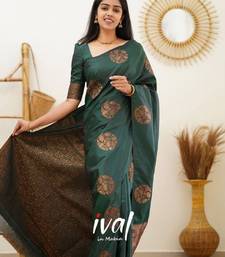 Green soft art silk banarasi jacuard work designer party wear saree with unstitched blouse piece