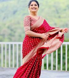 Maroon soft silk blend banarasi jacuard work designer party wear saree with unstitched blouse piece