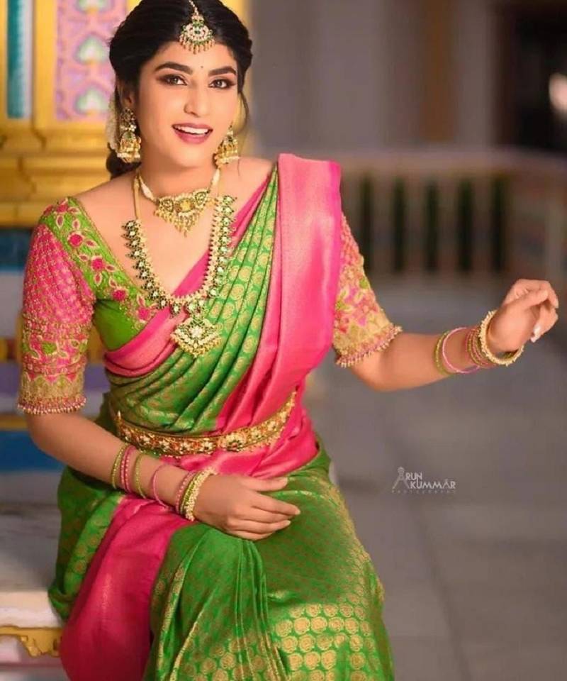 Saree : Color- Parrot Green / Fabric- Silk Blend