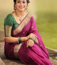 Pink green soft linen blend banarasi jacuard work designer party wear saree with unstitched blouse piece