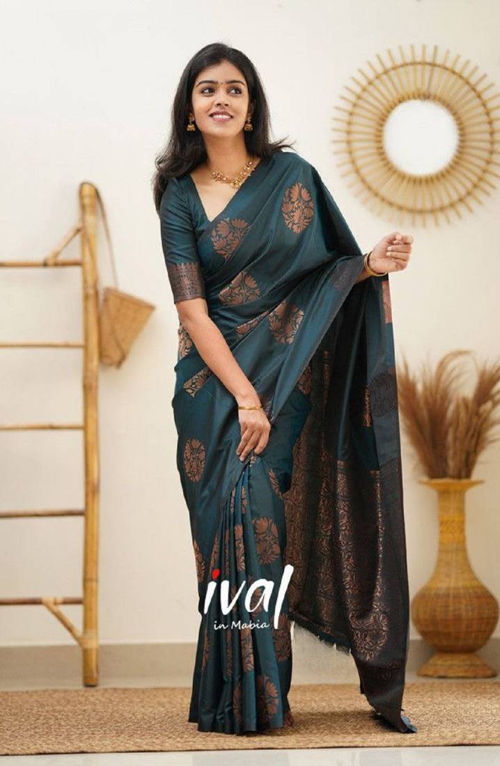 green soft art silk banarasi jacuard work designer party wear saree with unstitched blouse piece