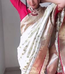 | Product Name | White Red Soft Linen Blend Banarasi Jacuard Work Designer Party Wear Saree With Unstitched Blouse Piece | |