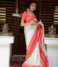 White red soft art silk banarasi jacuard work designer party wear saree with unstitched blouse piece
