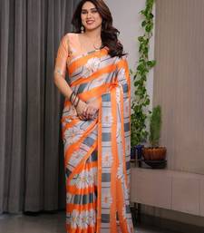 Designer satin georgette floral print saree for women with blouse