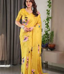 Designer satin georgette floral print saree for women with blouse