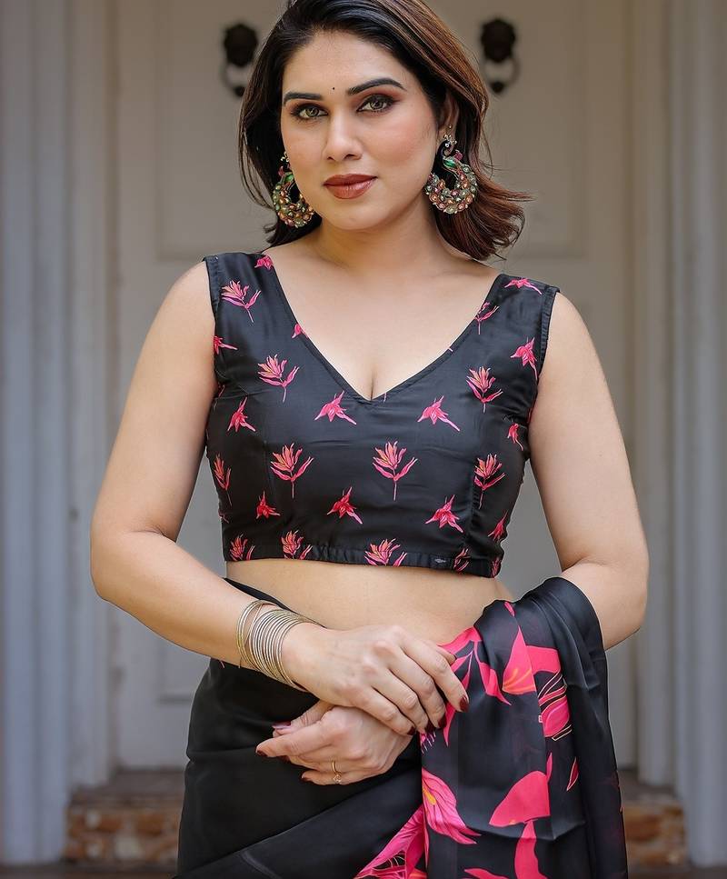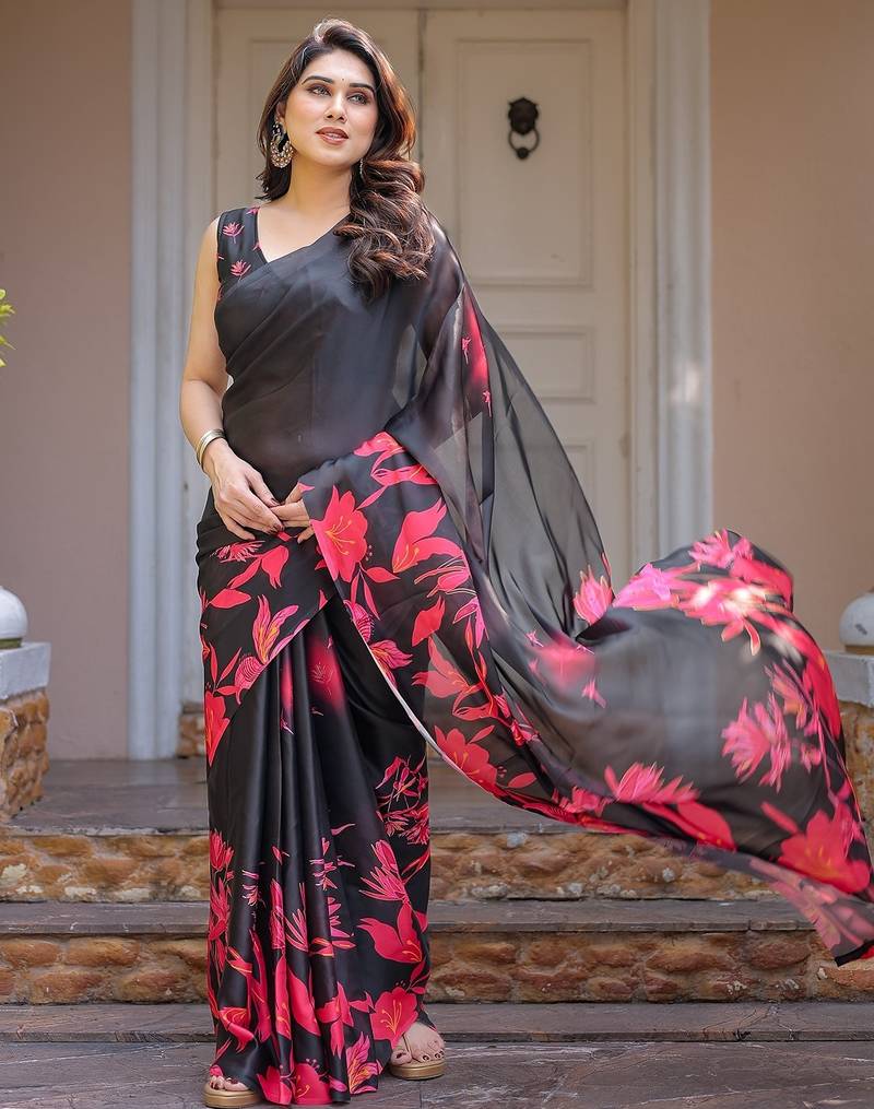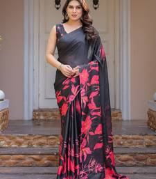 Designer satin georgette floral print saree for women with blouse