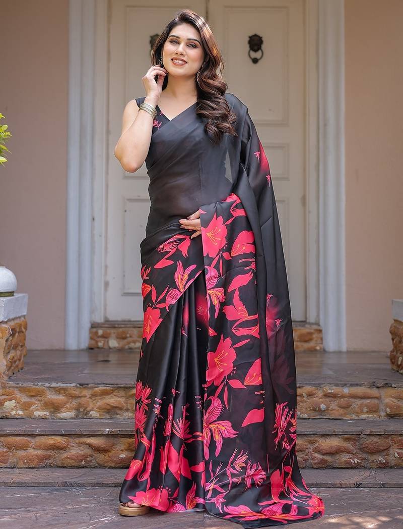 | Type | Satin Sarees , Floral Print | |