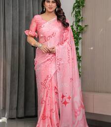 Modern floral satin georgette saree with matching blouse