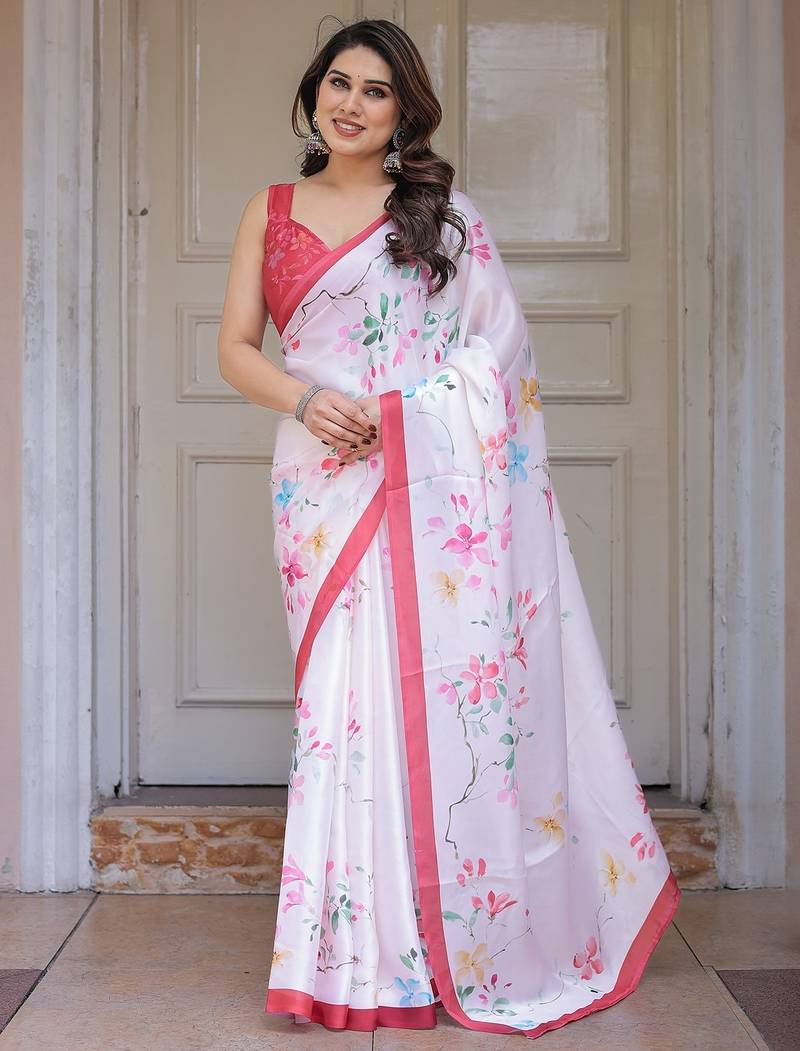 | Product Name | Premium Satin Georgette Printed Saree With Floral Motifs | |