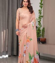 Soft satin georgette floral print saree for festive & party wear