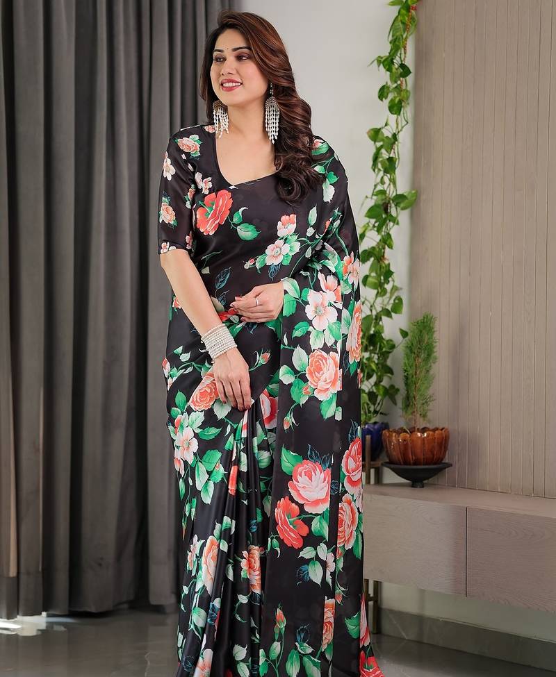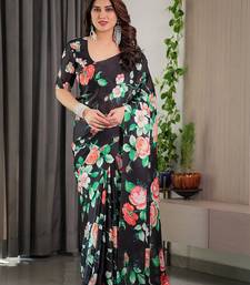 Stylish floral pattern satin georgette saree with blouse piece
