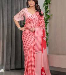 Stylish floral pattern satin georgette saree with blouse piece