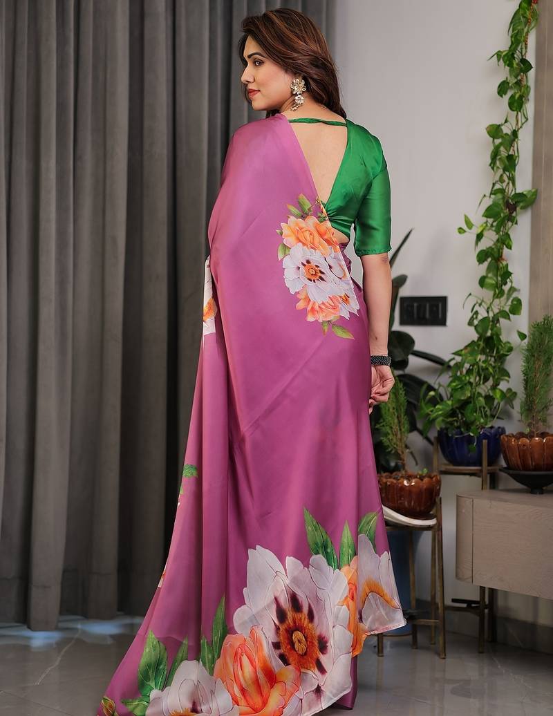 Women's floral designer satin georgette saree with blouse