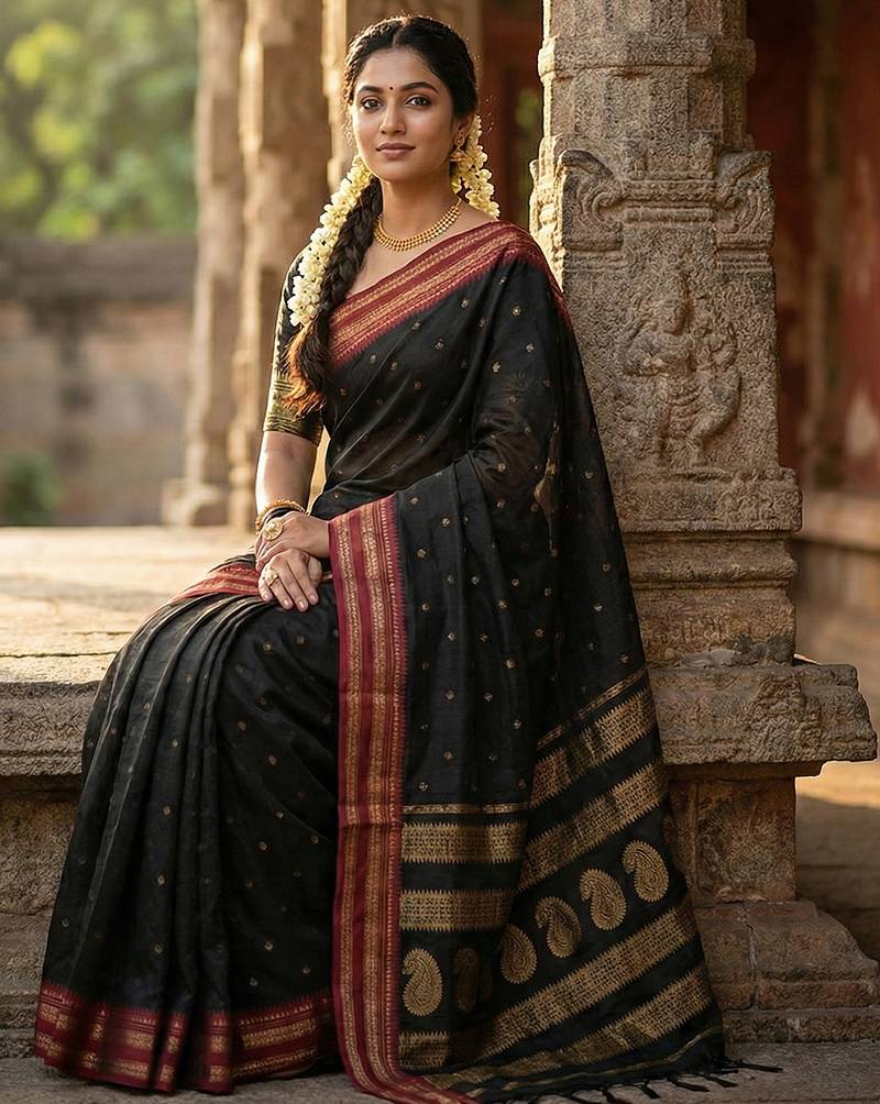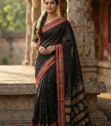 Black silk woven saree with blouse