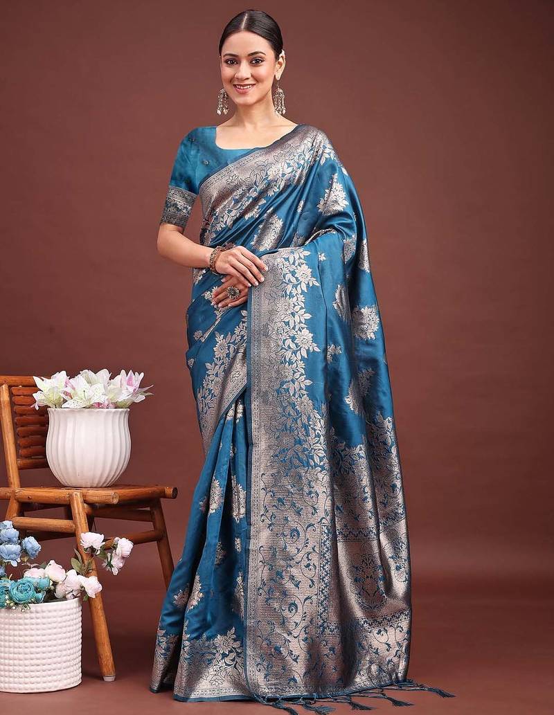 | Product Name | Blue Banarasi Silk Woven Work Saree With Blouse | |