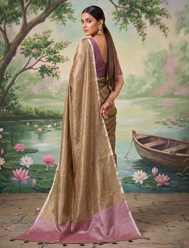 Brown tissue saree with blouse