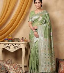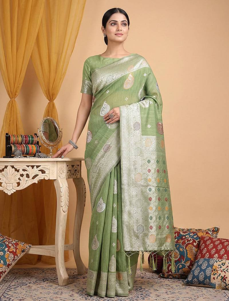 Green linen woven work saree with blouse