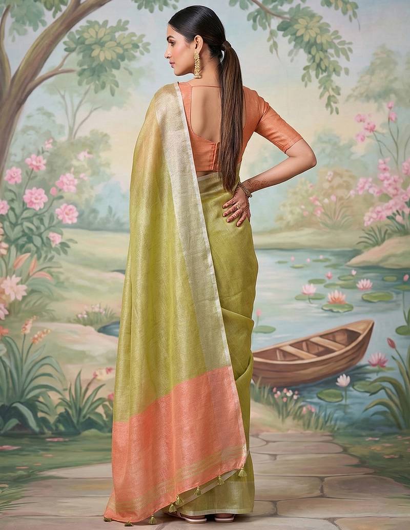 Green tissue saree with blouse