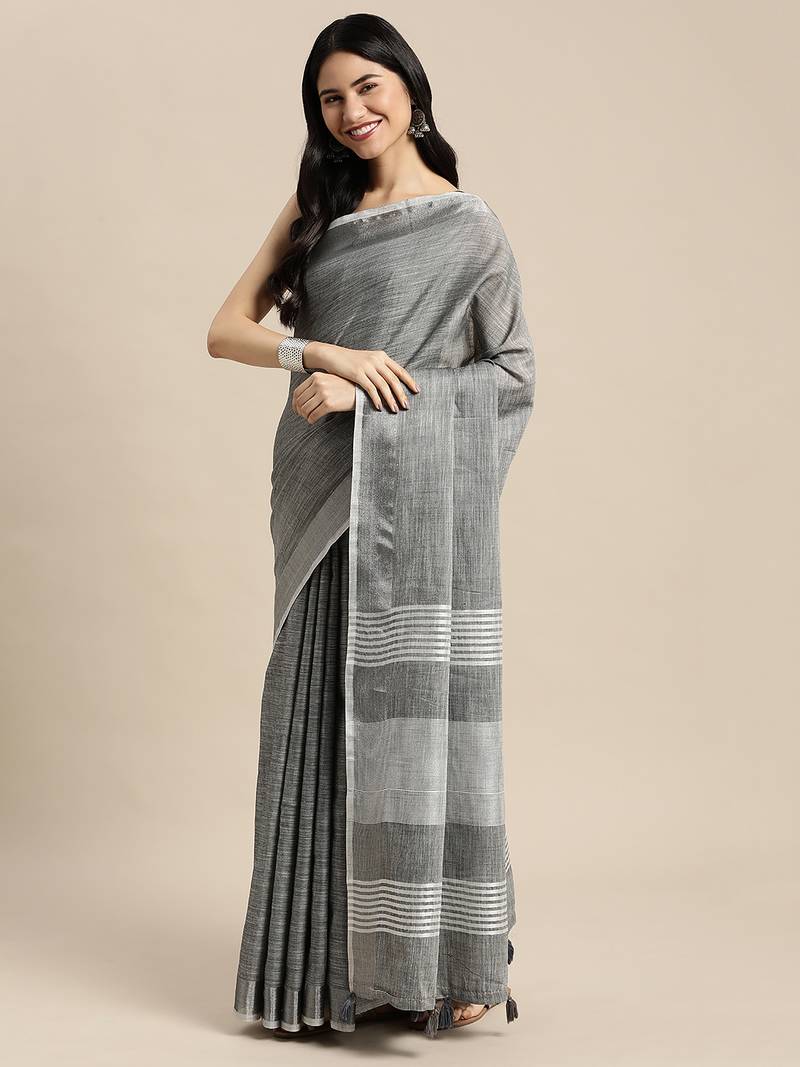| • | Saree | : | Color- Grey / Fabric- Linen |