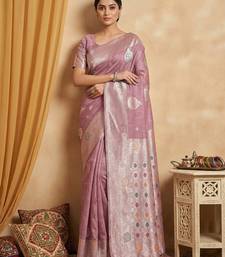 Lavender linen woven work saree with blouse