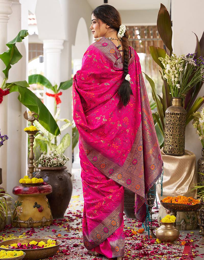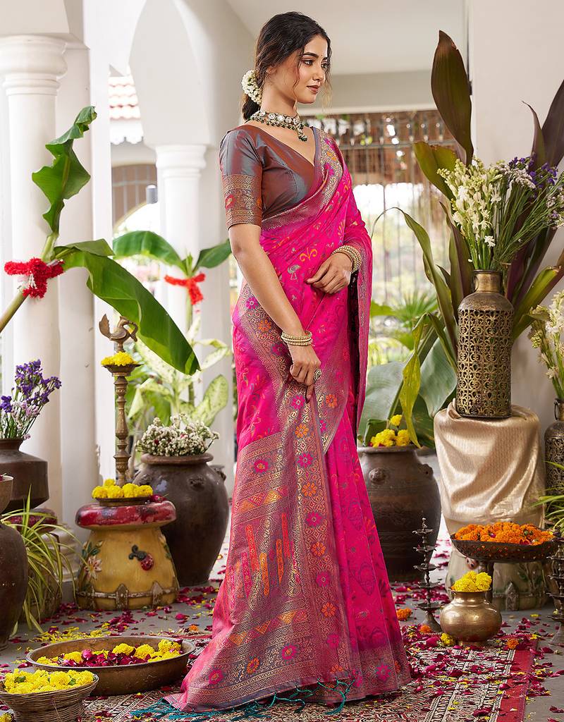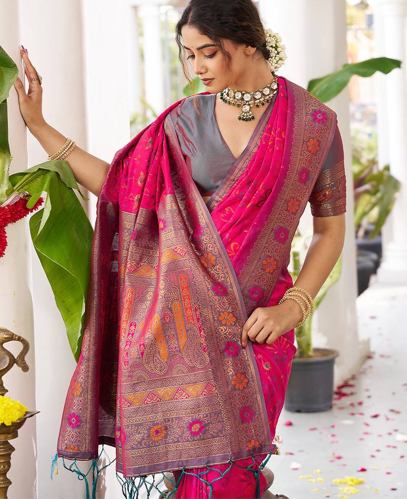 Magenta silk woven saree with blouse