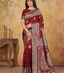 Maroon silk blend woven saree with blouse