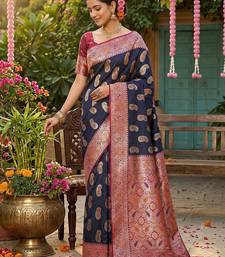 Navy silk blend woven saree with blouse