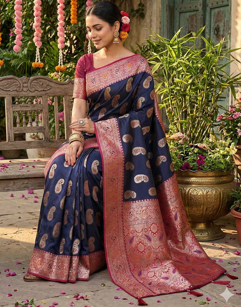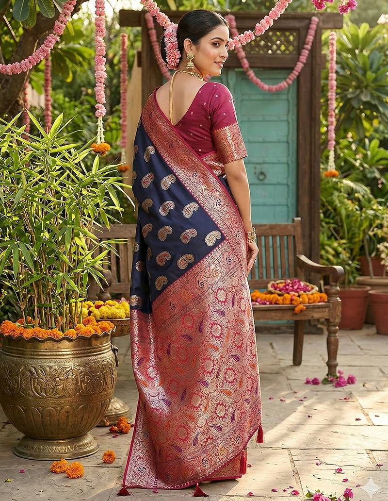 | Product Name | Navy Silk Blend Woven Saree With Blouse | |