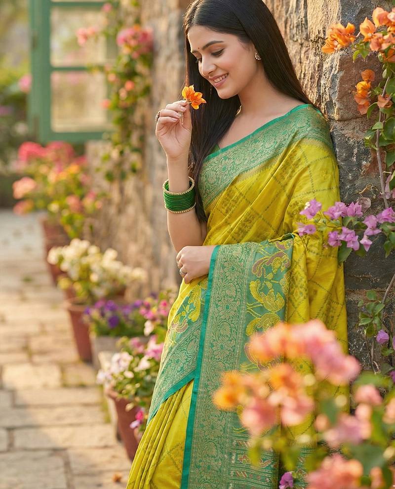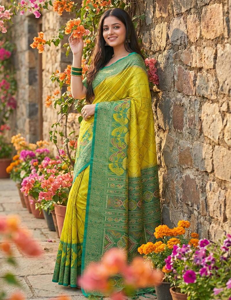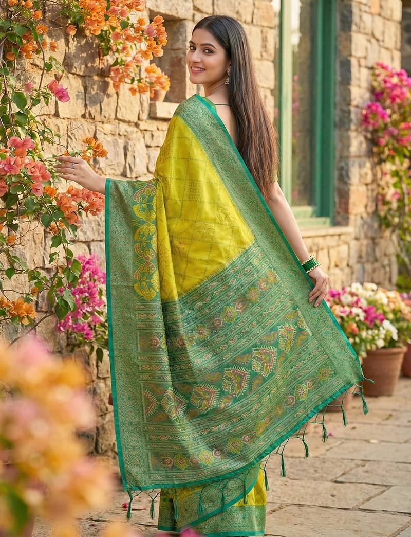 | • | Saree | : | Color- Olive / Fabric- Pochampally |