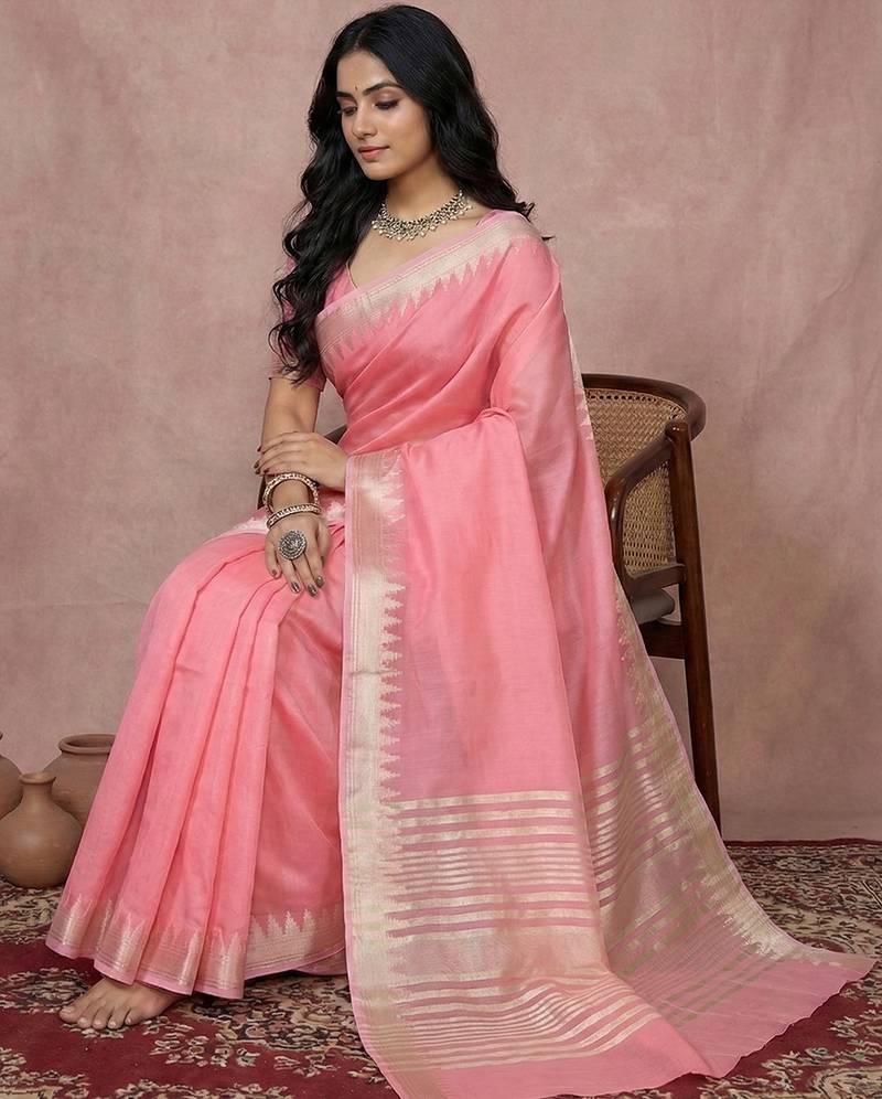 Pink cotton saree with blouse