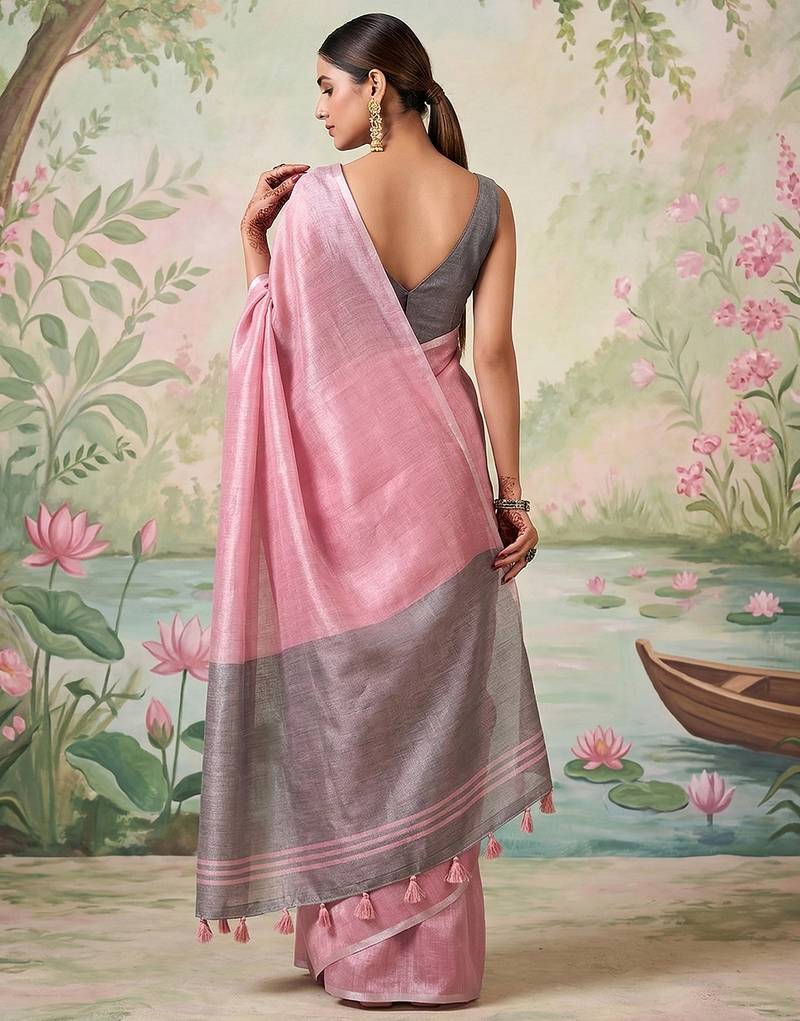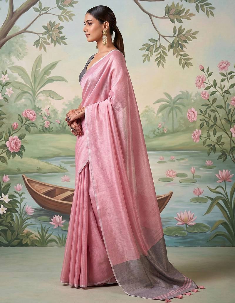 Pink tissue saree with blouse