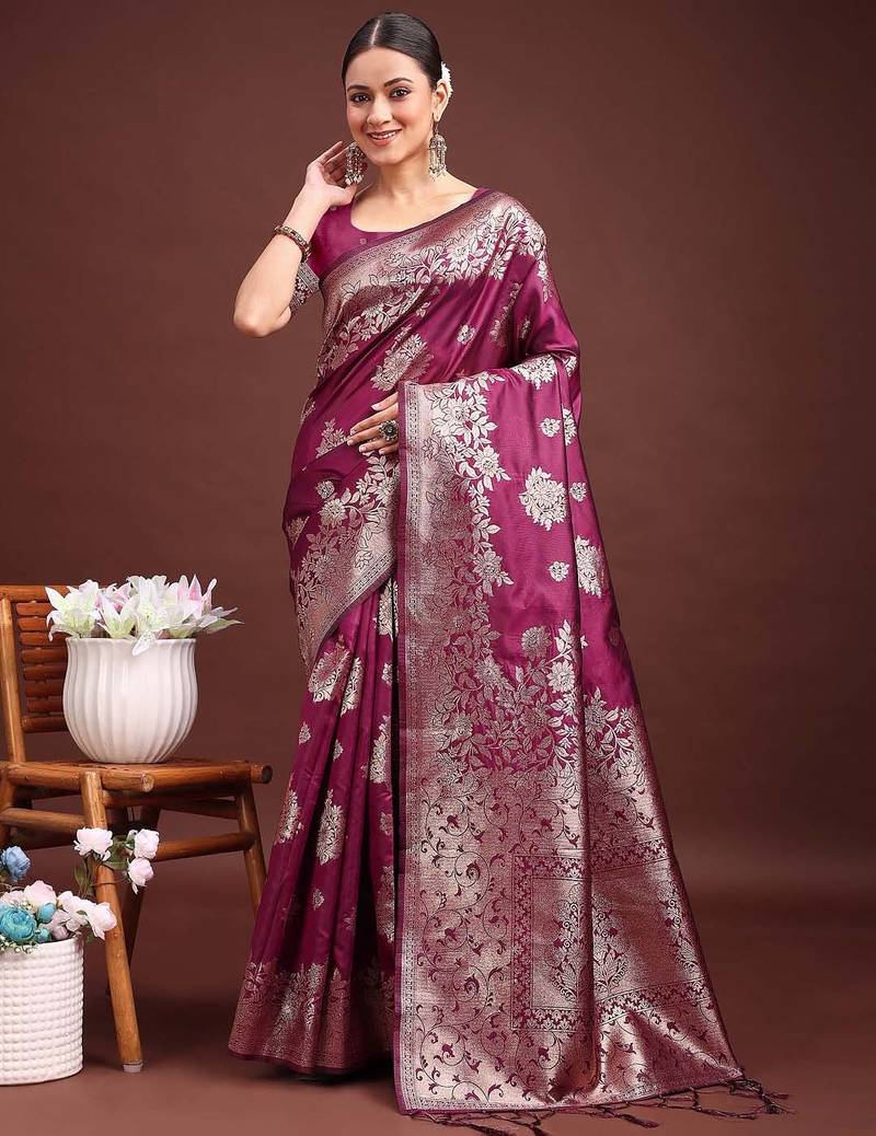 | Product Name | Purple Banarasi Silk Woven Work Saree With Blouse | |