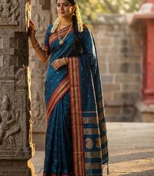 Teal silk woven saree with blouse