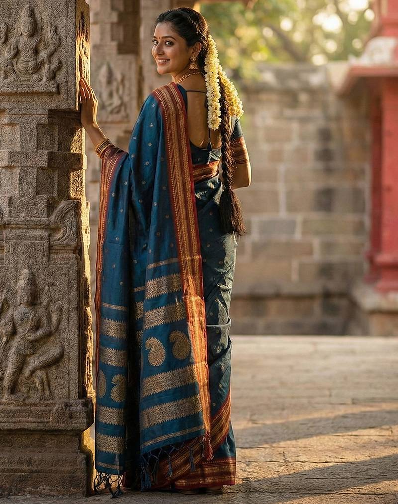 | Product Name | Teal Silk Woven Saree With Blouse | |