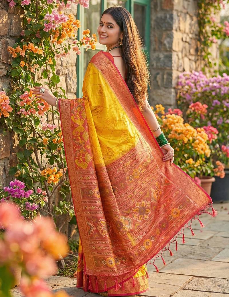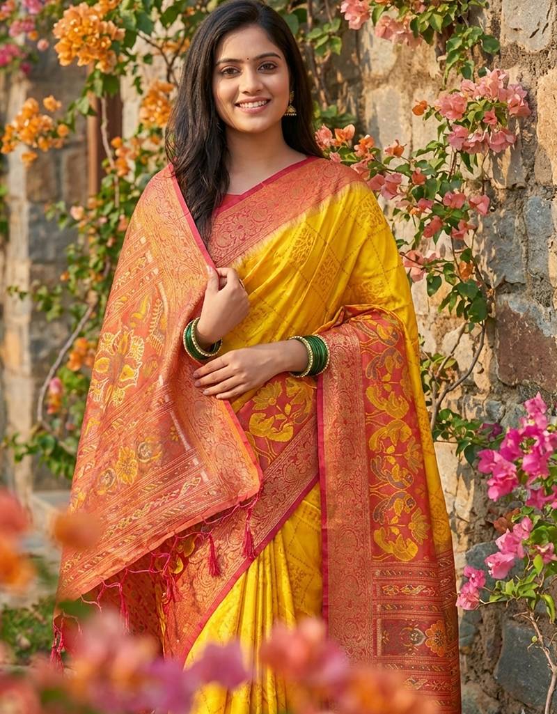 | • | Saree | : | Color- Yellow / Fabric- Pochampally |